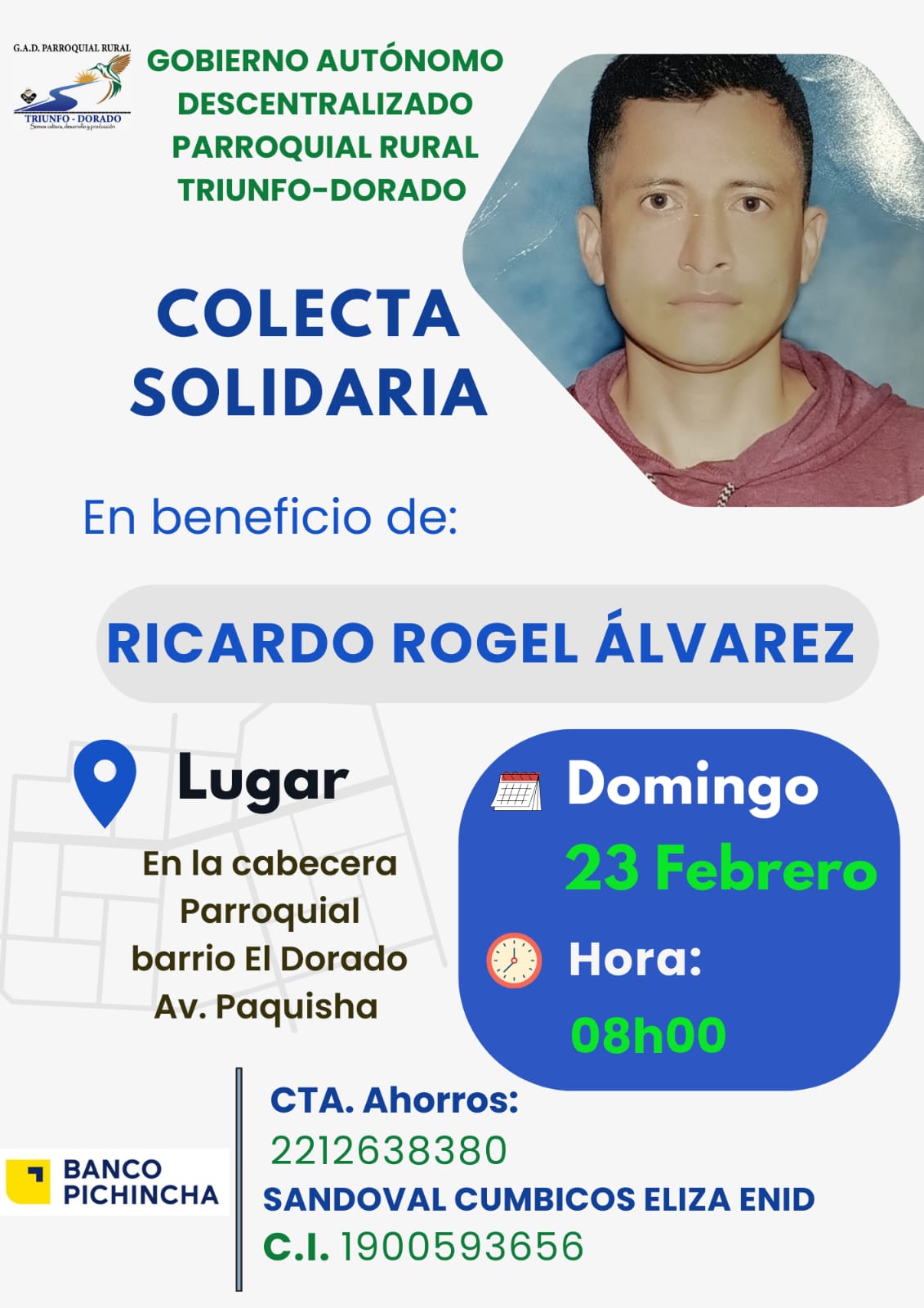 El Gobierno Parroquial Rural Triunfo-Dorado agradece a todos quienes apoyaron para llevar a cabo la Colecta Solidaria en beneficio del Sr. Ricardo Rogel.